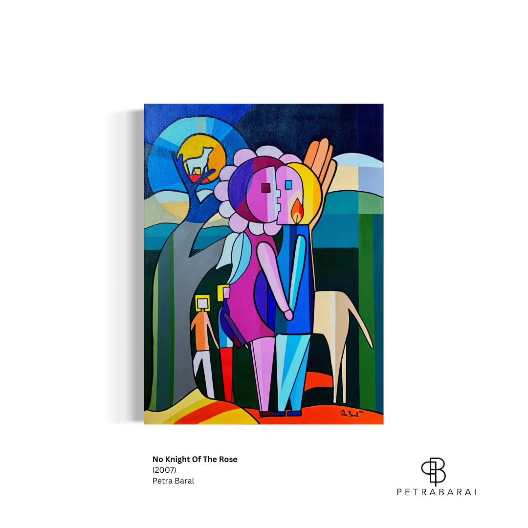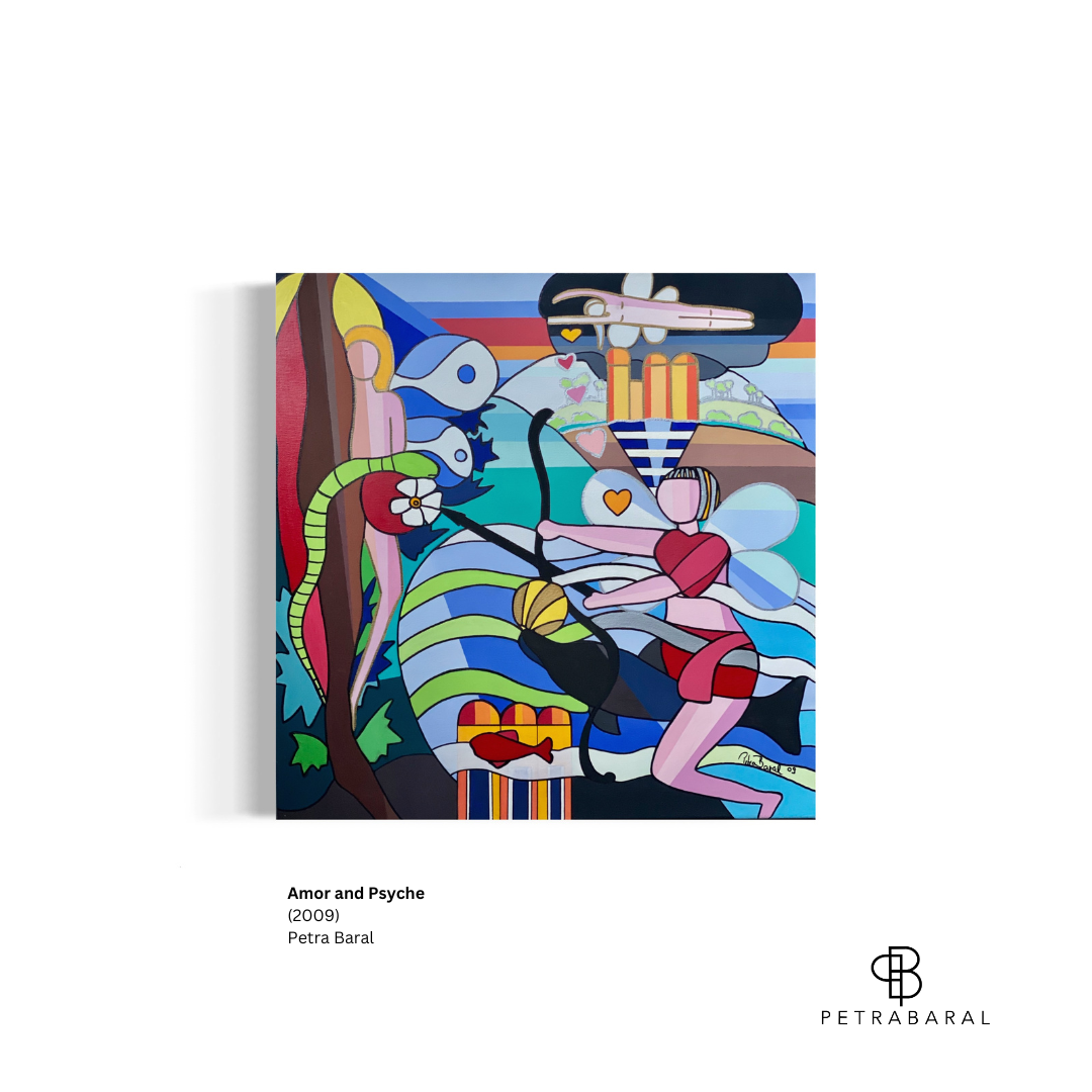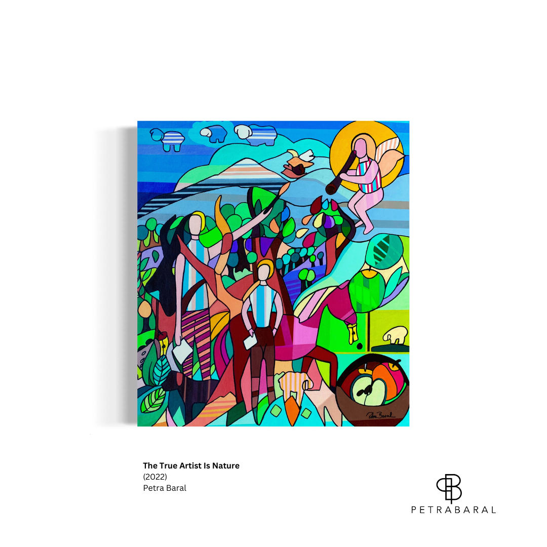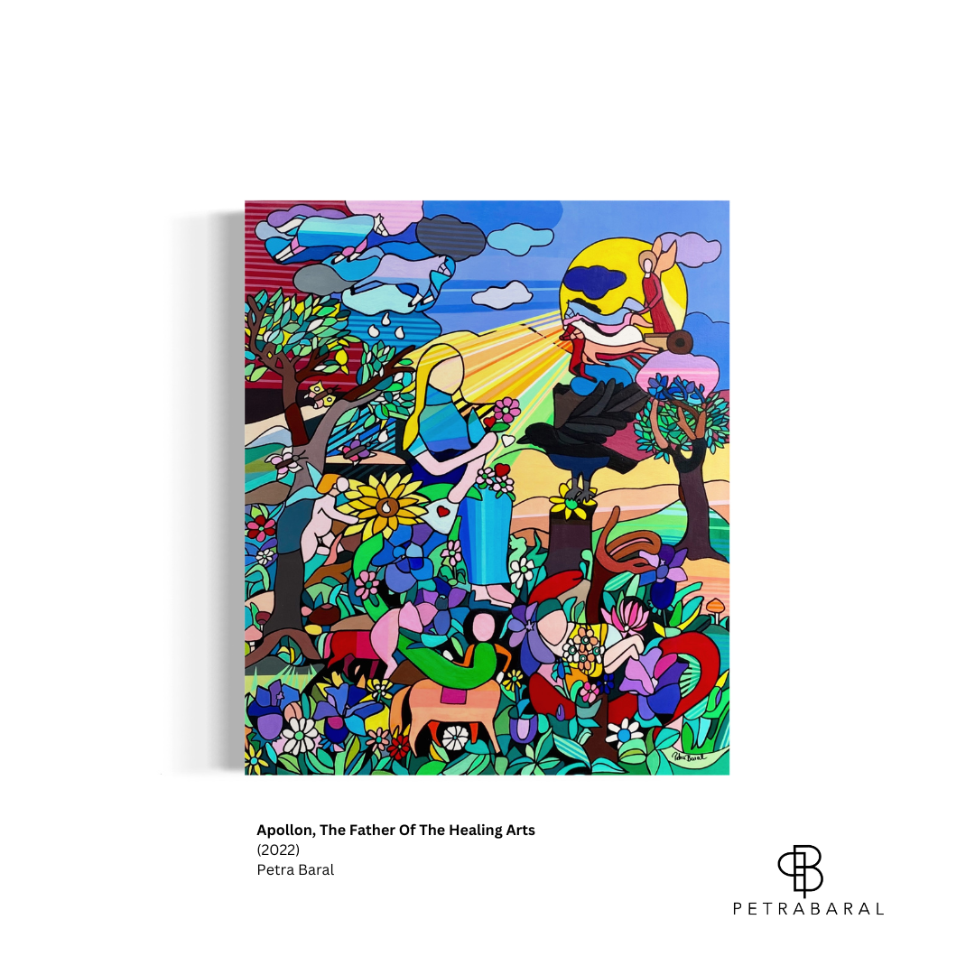 Petra draws inspiration from the stories of Greek mythology, which she explores to shed light on the timeless themes and challenges that are still relevant in our modern lives. She skilfully blends these timeless stories with contemporary issues and personal experiences, creating vibrant and colourful pieces in her distinctive style. Through her paintings, she seeks to convey the lessons of ancient Greek myths about preserving nature and diversity, love and other human emotions, and the cyclical nature of history.
