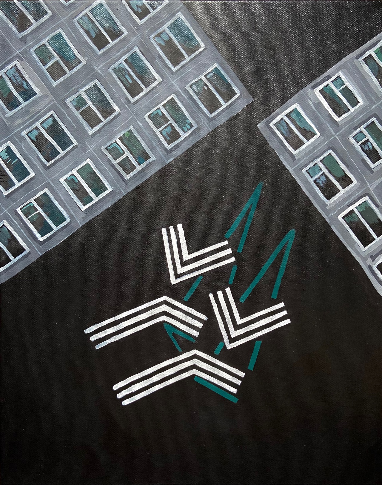 Surrounded by contrasting cityscapes, rigid architecture, and the quiet poetry of everyday routines, Goncharov developed a visual language built on sharp lines, simple geometric forms, and subtle gradients.