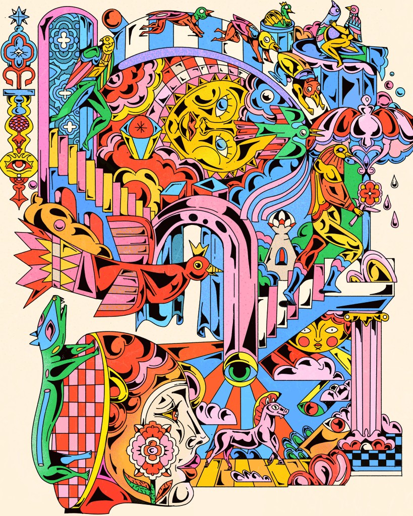 Currently, Yoaz is focused on a series of geometric, psychedelic illustrations that further examine repetition, pattern, and visual perception. Future plans include translating this body of work into physical products.
